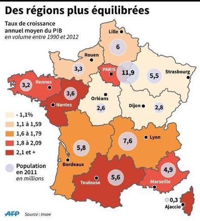 au Centre-Val de Loire, au périmètre inchangé, « cette région est assez peu cohérente », car les déplacements des travailleurs entre les départements qui la composent sont « assez limités » et pour partie extérieurs à la région : les travailleurs d’Eure-et-Loir vont vers l’Ile-de-France, une part de ceux du Cher ont leur activité professionnelle en Bourgogne.