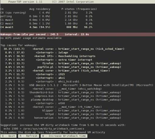 Développé par Intel, il permet de savoir quels sont les processus, mais aussi les périphériques, qui consomment le plus d’énergie en se basant sur divers paramètres dont la tendance qu’ils ont à réveiller le kernel.