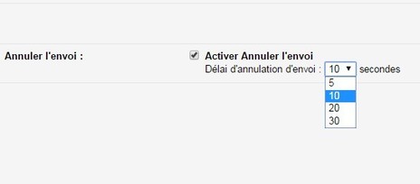 Pour activer cette fonction, il suffit de se rendre dans les paramètres de la boîte e-mail et de choisir l’option Annuler l’envoi avant de définir le délai durant lequel cette opération est possible. Quatre options sont proposées : 5, 10, 20 ou 30 secondes.